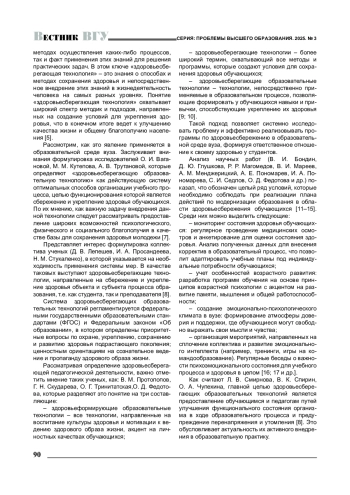 ТРИНИТАТСКАЯ О. Г., ГАЛУСТЯН О. В., ЧЕПИГА А. О. ПРОБЛЕМА ЗДОРОВЬЕСБЕРЕГАЮЩИХ ТЕХНОЛОГИЙ В ОБРАЗОВАТЕЛЬНОЙ СРЕДЕ ВУЗА // ВЕСТНИК ВОРОНЕЖСКОГО ГОСУДАРСТВЕННОГО УНИВЕРСИТЕТА. СЕРИЯ: ПРОБЛЕМЫ ВЫСШЕГО ОБРАЗОВАНИЯ. 2025. № 3