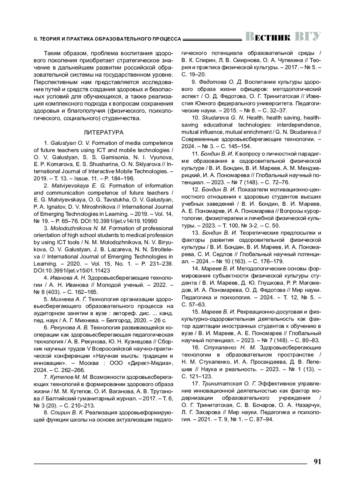Статья: ПРОБЛЕМА ЗДОРОВЬЕСБЕРЕГАЮЩИХ ТЕХНОЛОГИЙ В ОБРАЗОВАТЕЛЬНОЙ СРЕДЕ ВУЗА (2025)