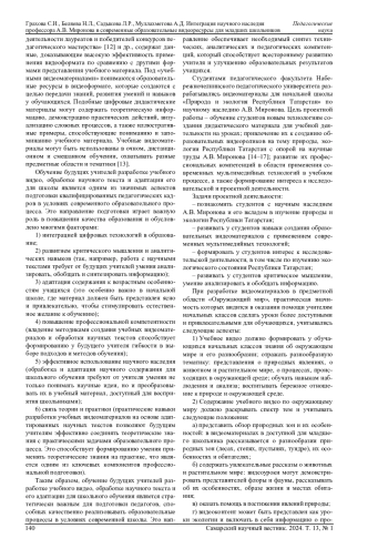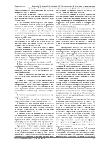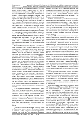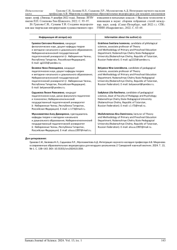 ГРАХОВА С. И., БЕЛЯЕВА Н. Л., САДЫКОВА Л. Р., МУЛЛАХМЕТОВА А. Д. ИНТЕГРАЦИЯ НАУЧНОГО НАСЛЕДИЯ ПРОФЕССОРА А. В. МИРОНОВА В СОВРЕМЕННЫЕ ОБРАЗОВАТЕЛЬНЫЕ ВИДЕОРЕСУРСЫ ДЛЯ МЛАДШИХ ШКОЛЬНИКОВ // САМАРСКИЙ НАУЧНЫЙ ВЕСТНИК. 2024. ТОМ 13, № 1
