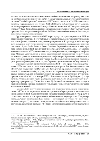 2. Городнова Н. В. Цифровая экономика: развитие NFT-рынка и смарт-контрактов // Вопросы инновационной экономики. - 2022. - Т. 12. - № 2. - С. 949-966. EDN: YCMOXW