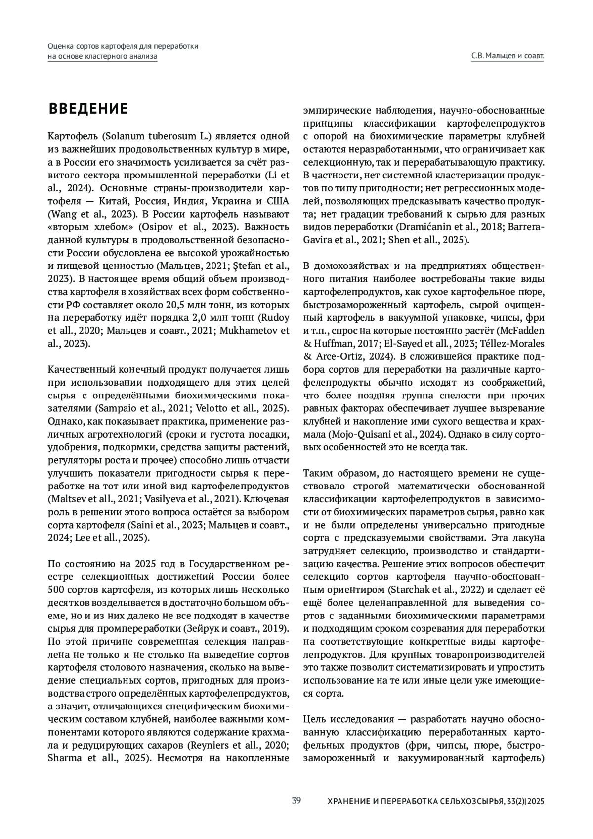 Картофель (Solanum tuberosum L.) является одной из важнейших продовольственных культур в мире, а в России его значимость усиливается за счёт развитого сектора промышленной переработки (Li et al., 2024).