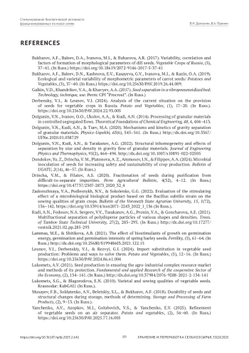 17. Янченко, А.В., Азопков, М.И., Голубович, В.С., & Янченко, Е.В. (2025). Доработка семян овощных культур на воздушном сепараторе. Картофель и овощи, (2), 56-60. 10.25630/ PAV.2025.77.16.005. DOI: 10.25630/PAV.2025.77.16.005 EDN: YMCITC