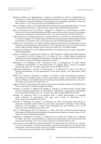 10. Задорожная, В.А., Подлесных, Н.В., & Соколенко, Г.Г. (2022). Оценка стимулирующего действия микробиологического биопрепарата на основе штамма Bacillus subtilis на посевные качества зерновых культур. Вестник Воронежского государственного аграрного университета, 15(1), 136-142. DOI: 10.53914/issn2071-2243_2022_1_136 EDN: QPQMAI