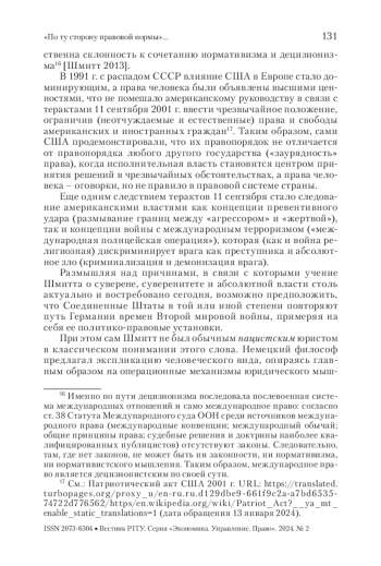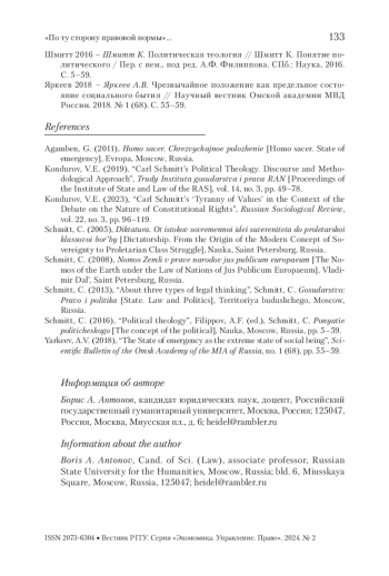 Автор статьи предпринимает попытку анализа понятия суверен с позиции юридического децизионизма и политической теологии – учений, разработанных немецким философом и правоведом Карлом Шмиттом (1888–1985).