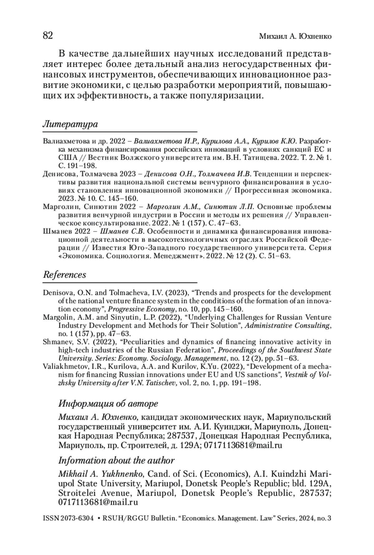 Представленная статья посвящена анализу инструментов, обеспечивающих реализацию механизма инновационного развития экономики Российской Федерации. В работе проанализирована динамика позиции России в «Глобальном инновационном индексе» как в целом, так и по составляющим его компонентам. Охарактеризован механизм финансового обеспечения инновационных процессов. Сформированы подходы финансирования инновационной деятельности в зависимости от жизненного цикла компании. С учетом вида экономической деятельности автором проведен анализ затрат на инновационную деятельность за период 2021–2022 гг. Представлена российская финансовая инфраструктура поддержки инноваций. Определены инструменты финансирования инновационной деятельности. Раскрыта система бюджетного финансирования инновационной деятельности. Охарактеризованы особенности венчурного финансирования стартапов. Автором проведена сравнительная характеристика преимуществ и недостатков финансовых инструментов, обеспечивающих инновационное развитие. Приведены современные тенденции применения финансовых инструментов с учетом геополитических изменений и санкционного давления на Российскую Федерацию.