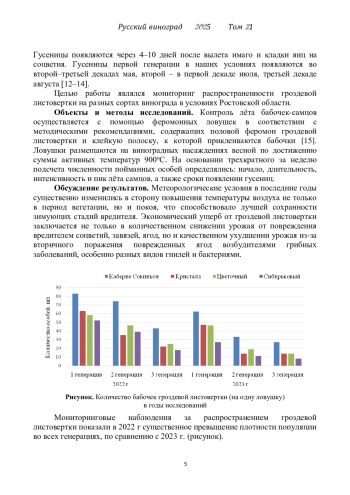 11. Арестова Н.О., Рябчун И.О. Влияние метеорологических условий и комбинированного инсектоакарицида на изменение вредоносности гроздевой листовертки // Плодоводство и виноградарство Юга России. 2023. № 79(1). С. 218-229. EDN: OWRWEL