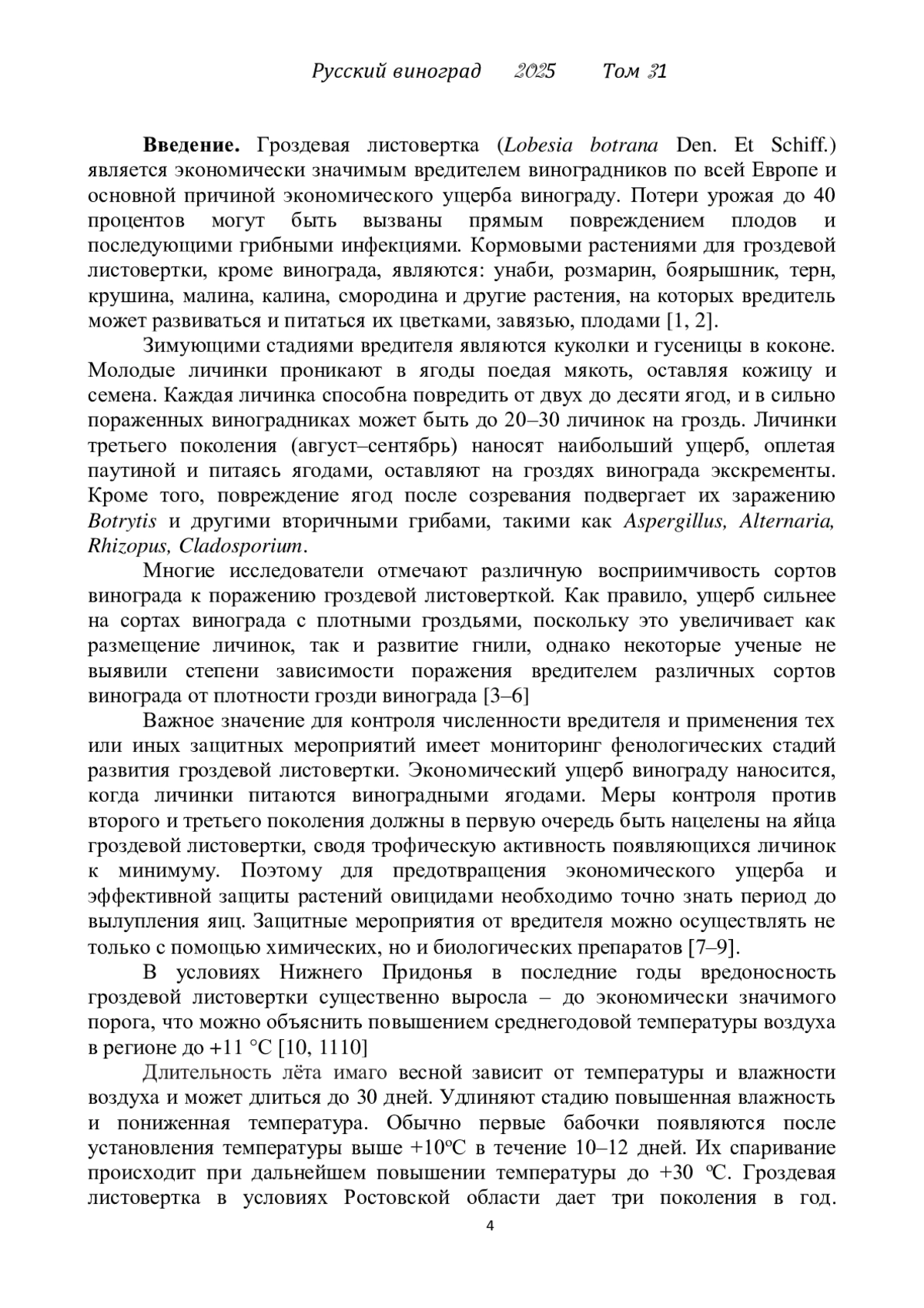 6. Snjezana H. Susceptibility of some grapevine cultivars in area of vineyards of Podgorica on the attack of european grape berry moth-lobesia botrana den &schiff, lepidoptera, trotricidae// ActaHortic. 2004. № 652. P. 355-358.