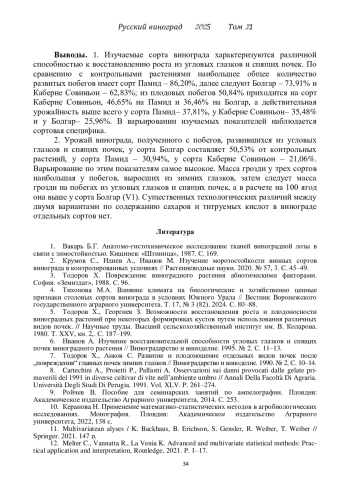 7. Тодоров Х., Анков С. Развитие и плодоношение отдельных видов почек после „повреждения“ главных почек зимних глазков // Виноградарство и виноделие. 1990. № 2, С. 10–14.