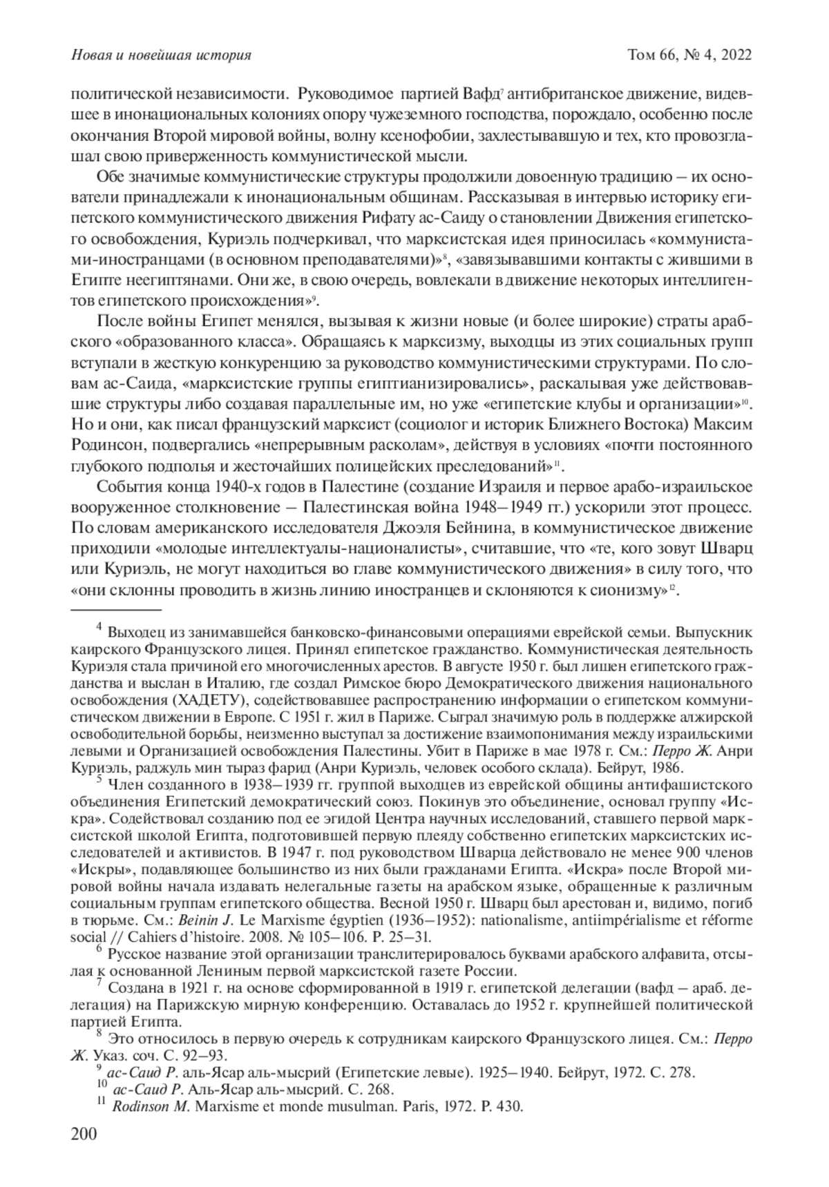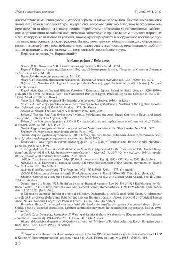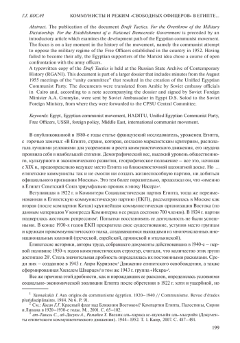 Статья: КОММУНИСТЫ И РЕЖИМ "СВОБОДНЫХ ОФИЦЕРОВ" В ЕГИПТЕ В СЕРЕДИНЕ 1950-Х ГОДОВ: КОНФЛИКТ И ПРИМИРЕНИЕ (№ 4-5) (2022)