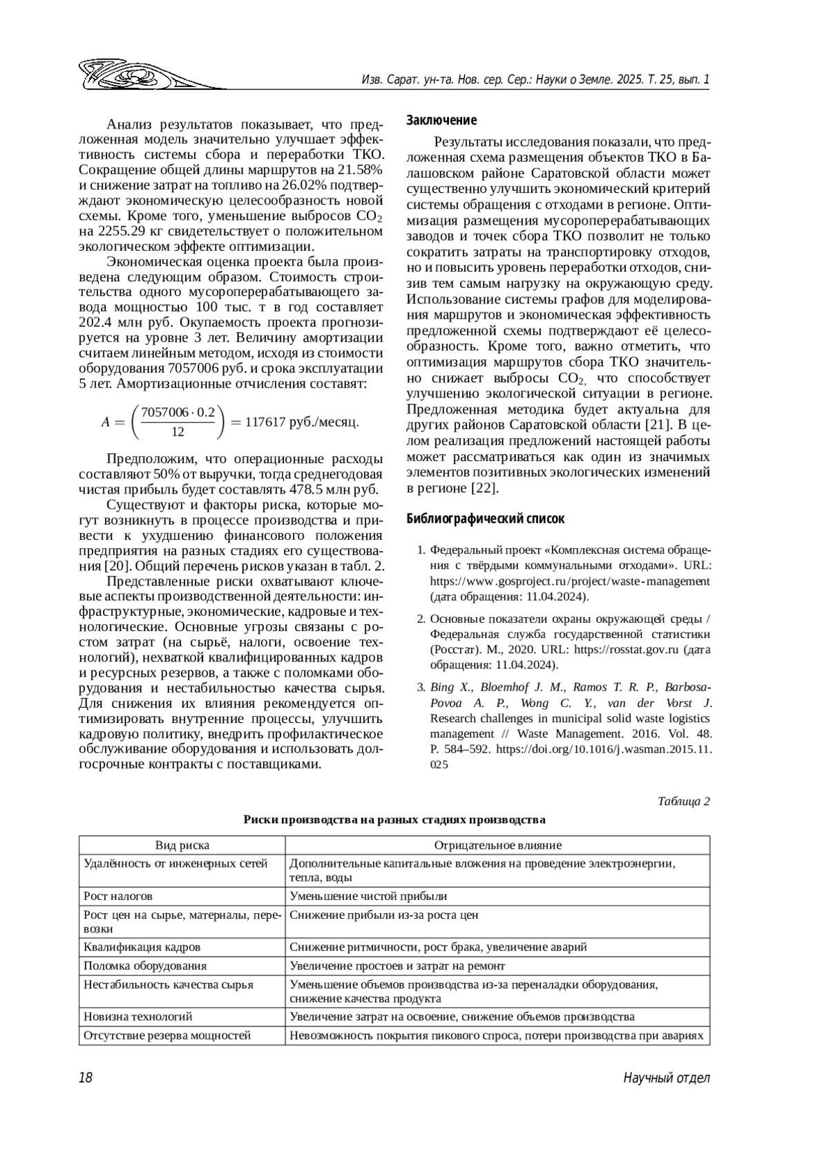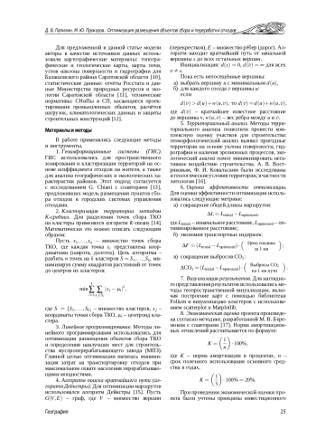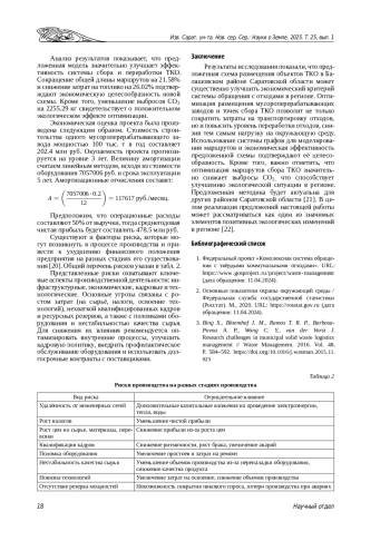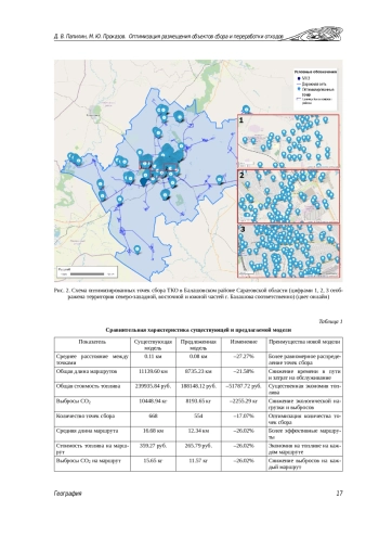 Проблема обращения с твёрдыми коммунальными отходами в России становится всё более актуальной, требуя внедрения эффективных территориально-ориентированных решений. В статье анализируются вопросы оптимизации размещения объектов сбора и переработки твёрдых коммунальных отходов на примере Балашовского района Саратовской области. Основное внимание уделяется использованию методов линейного программирования и геоинформационного моделирования для выбора оптимальных мест размещения мусороперерабатывающих заводов. Применение ГИС-технологий и методов пространственного анализа позволило провести зонирование территории и оценку экологических рисков. Разработана оптимальная схема размещения объектов сбора и переработки твёрдых коммунальных отходов для Балашовского района Саратовской области. Предложенная схема позволяет минимизировать затраты на транспортировку отходов и максимизировать эффективность их переработки, что способствует созданию более устойчивой и экономически выгодной системы обращения с отходами в регионе.