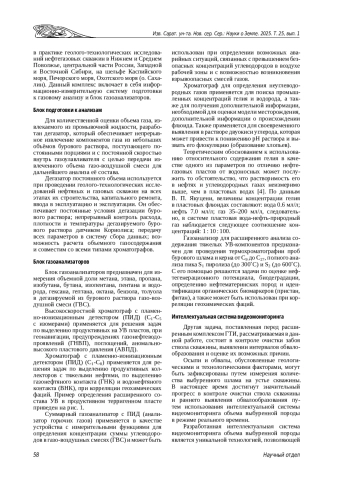 Актуальность работы определяется тем, что перед Российскими нефтегазовыми компаниями встала задача создания отечественных информационно-измерительных систем, применяемых в процессе бурения наклонно-направленных и горизонтальных скважин. В представленной статье рассмотрен опыт реализации высокотехнологичного комплекса приборов и устройств, позволяющий решать задачи определения расширенного состава углеводородов в промывочной жидкости, шламе и керне, обеспечивать оптимальный режим бурения и вскрытия продуктивных пластов, осуществлять контроль очистки забоя ствола скважины и выявление интервалов обвалообразования. Показана перспективность применения системы подготовки к газовому анализу (дегазатор постоянного объема) и блока газоанализаторов. Описана уникальная интеллектуальная система видеомониторинга объема выбуренной породы, позволяющая заменить дорогостоящие импортные шламовзвешивающие машины.