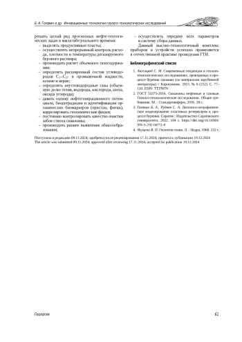 1. Аксельрод С. М. Современные тенденции в геологотехнологических исследованиях, проводимых в процессе бурения скважин (по материалам зарубежной литературы) // Каротажник. 2015. № 6 (252). С. 77- 110. EDN: TTZNFN