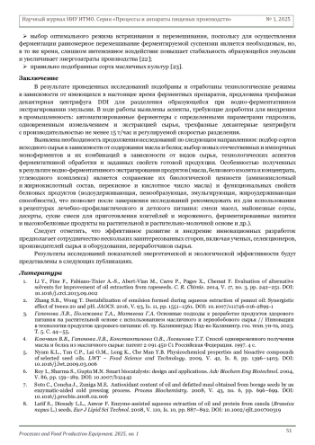 Получение белковой и липидной фракции повышенной биологической ценности из семян масличных с сохранением нативных полезных веществ и функциональных свойств является важной проблемой масложировой промышленности. Одним из вариантов решения данной задачи может стать разработка и внедрение технологий ферментативного гидролиза масличных препаратами гидролаз и протеаз, модифицирующих клеточную структуру масличного сырья и способствующих выходу масла и белка из семян с последующим разделением полученной белково-жировой эмульсии на липидную и протеиновую фракции.