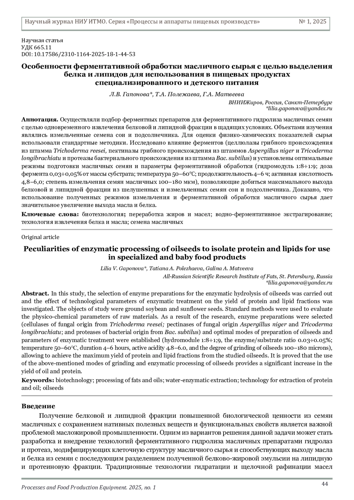 3. Гапонова Л.В., Полежаева Т.А., Матвеева Г.А. Основные подходы к разработке продуктов здорового питания на растительной основе с использованием масличного и зернобобового сырья // Инновации в технологии продуктов здорового питания: сб. тр. Калининград: Изд-во Калинингр. гос. техн. ун-та, 2023. Т. 5. С. 44-55.
