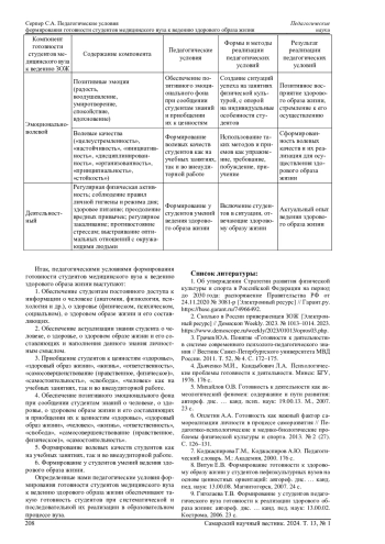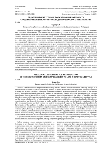Статья: ПЕДАГОГИЧЕСКИЕ УСЛОВИЯ ФОРМИРОВАНИЯ ГОТОВНОСТИ СТУДЕНТОВ МЕДИЦИНСКОГО ВУЗА К ВЕДЕНИЮ ЗДОРОВОГО ОБРАЗА ЖИЗНИ (2024)