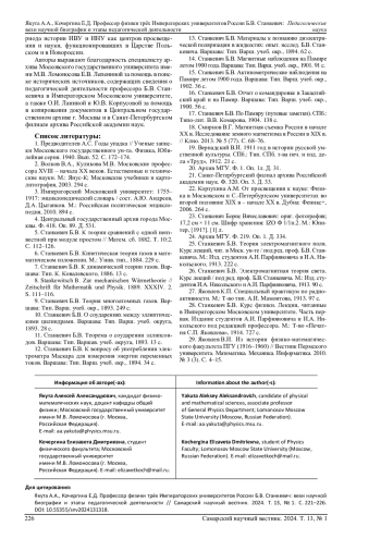 Статья: ПРОФЕССОР ФИЗИКИ ТРЁХ ИМПЕРАТОРСКИХ УНИВЕРСИТЕТОВ РОССИИ Б. В. СТАНКЕВИЧ: ВЕХИ НАУЧНОЙ БИОГРАФИИ И ЭТАПЫ ПЕДАГОГИЧЕСКОЙ ДЕЯТЕЛЬНОСТИ (2024)