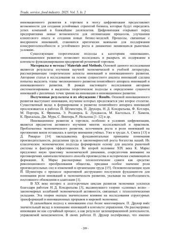 Статья посвящена исследованию эволюции концепций и теоретических подходов к инновационному развитию с акцентом на эволюционные этапы и современные трактовки инноваций в экономике и торговле. Предлагаемый анализ дает всестороннее представление о процессах, происходящих в экономике, и их влиянии на торговлю.