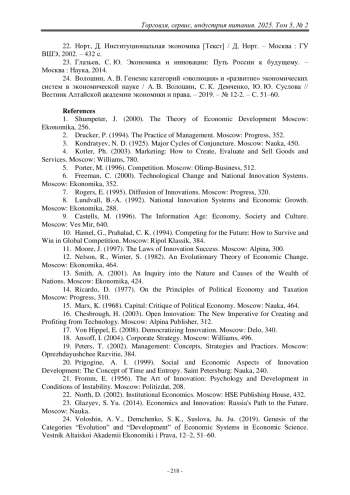 1. Шумпетер, Й. Теория экономического развития [Текст] / Й. Шумпетер. – Москва : Экономика, 2000. – 256 с.