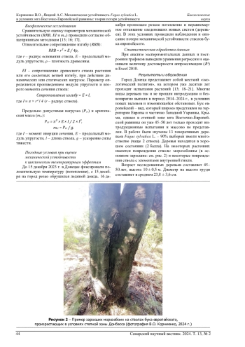 3. Корниенко В.О. Влияние экологических факторов на физико-механические свойства, морфометрию и аллометрию древесных растений урбоэкосистем (на примере города Донецка): дис. … канд. биол. наук: 1.5.15. Ростов-на-Дону, 2022. 166 с. EDN: QYUEPJ