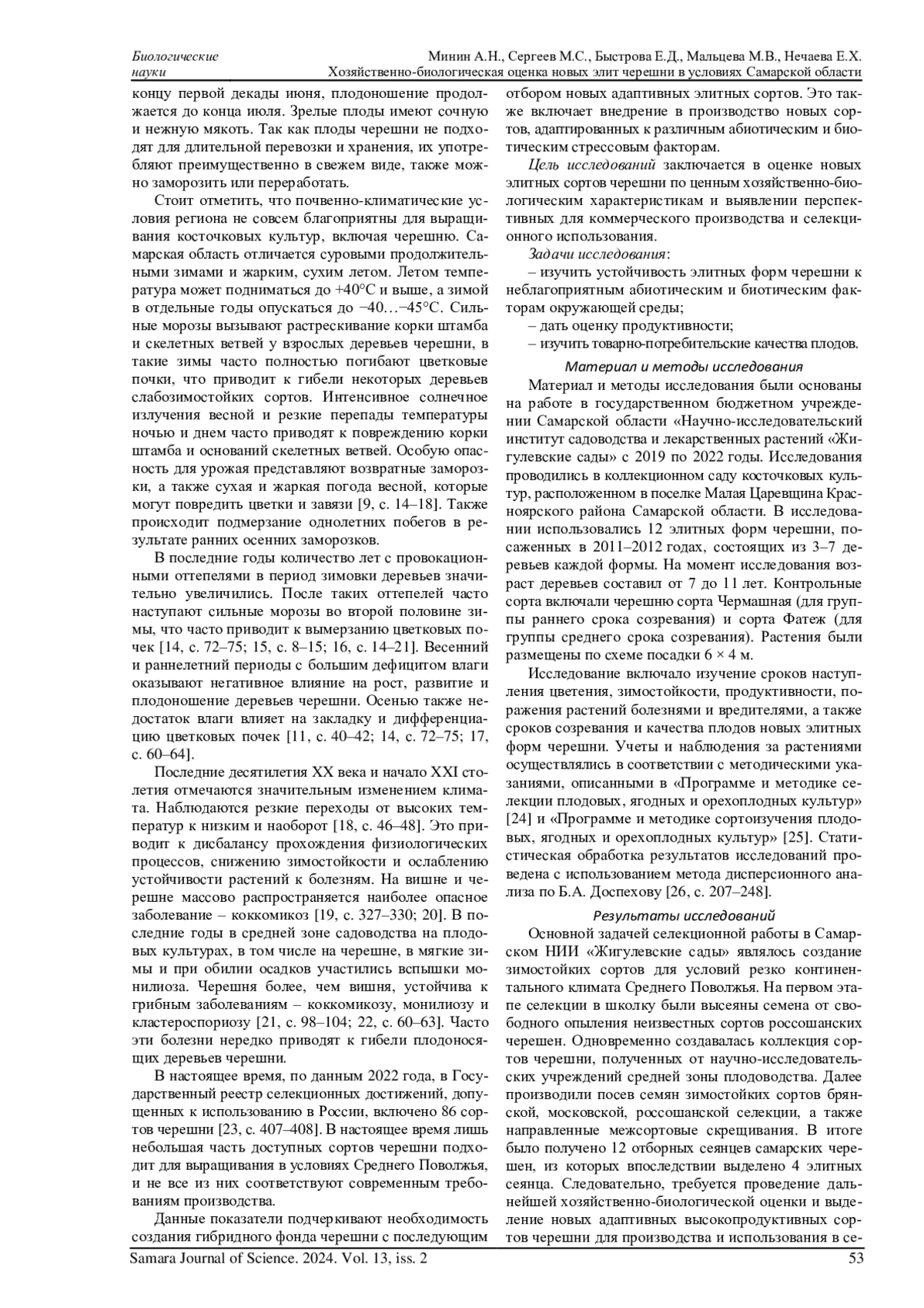 9. Минин А.Н., Нечаева Е.Х. Перспективы возделывания культуры черешни в условиях лесостепи Самарской области // Известия Самарской государственной сельскохозяйственной академии. 2017. № 2. С. 14-18. EDN: YKKIDJ