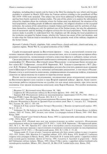 Статья: ИТАЛЬЯНСКИЕ КАТОЛИЧЕСКИЕ КАПЕЛЛАНЫ НА ВОСТОЧНОМ ФРОНТЕ В ГОДЫ ВТОРОЙ МИРОВОЙ ВОЙНЫ (2022)
