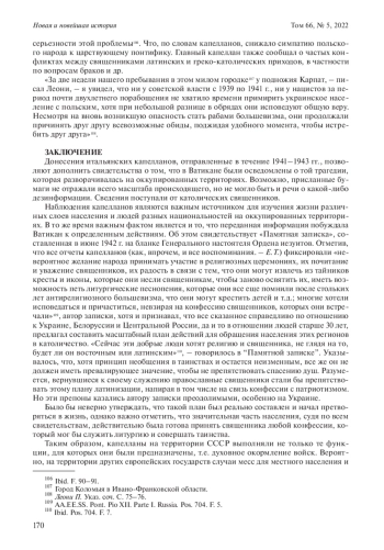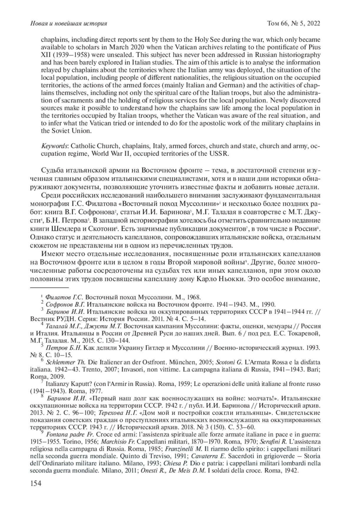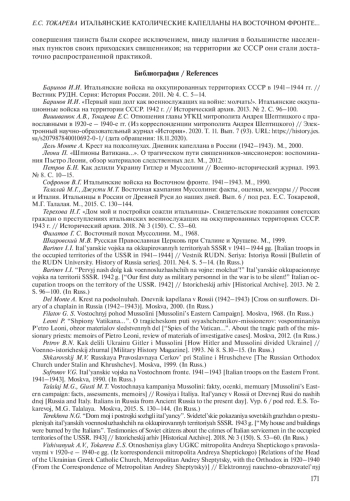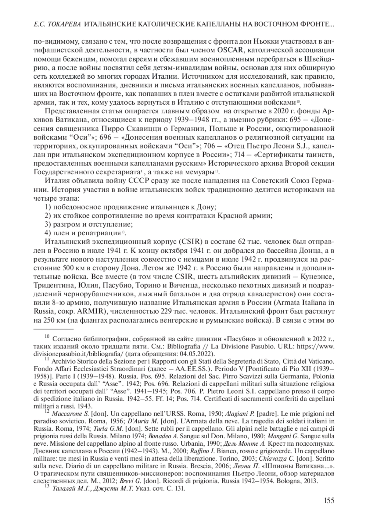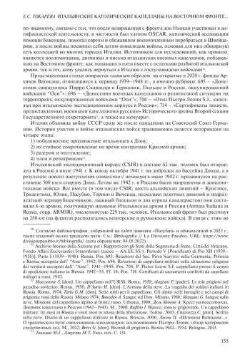 ТОКАРЕВА Е. С. ИТАЛЬЯНСКИЕ КАТОЛИЧЕСКИЕ КАПЕЛЛАНЫ НА ВОСТОЧНОМ ФРОНТЕ В ГОДЫ ВТОРОЙ МИРОВОЙ ВОЙНЫ // НОВАЯ И НОВЕЙШАЯ ИСТОРИЯ. 2022. № 5