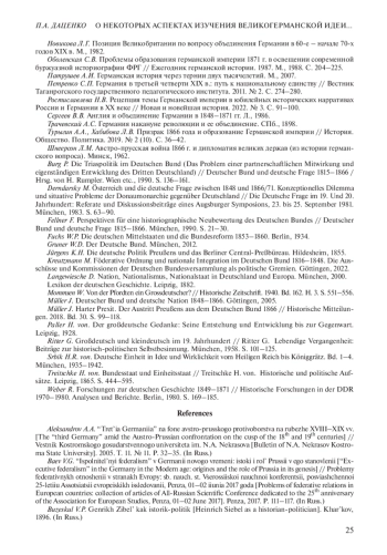1. Александров А.А. “Третья Германия” на фоне австро-прусского противоборства на рубеже XVIII-XIX вв. // Вестник Костромского государственного университета им. Н.А. Некрасова. 2005. Т. 11. № 11. С. 32-35. EDN: RUWDAR