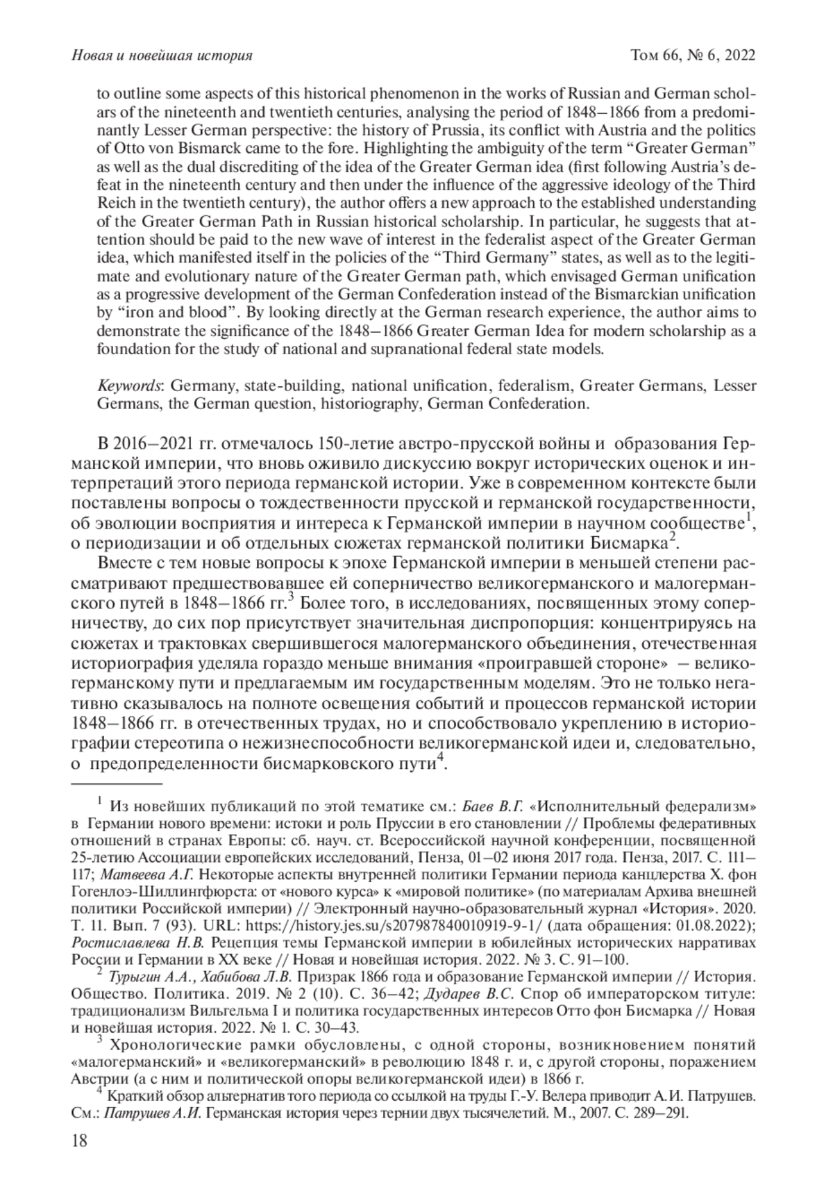22. Турыгин А.А., Хабибова Л.В. Призрак 1866 года и образование Германской Империи // История. Общество. Политика. 2019. № 2 (10). С. 36-42. EDN: YMIGEY