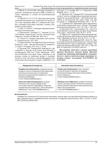 17. Судницына Д.Н. Характерные черты зарастания реки Великой в центральной части г. Пскова // Псковский регионологический журнал. 2017. № 2 (30). С. 108-116. EDN: YKPEMT