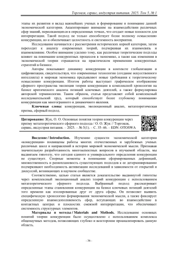 Осуществлен комплексный эволюционный анализ теорий конкуренции с использованием метатеоретического сферного подхода, который позволяет систематизировать эволюцию конкурентных теорий, выделяя ключевые этапы их развития и вклад важнейших ученых в формирование и понимание данной экономической категории. Акцентировано внимание на взаимодействии различных сфер знаний, пересекающихся в определенных точках, что создает новые плоскости для интерпретации. Такой подход не только способствует более полному осмыслению конкуренции, но и обеспечивает целостность и системность восприятия.