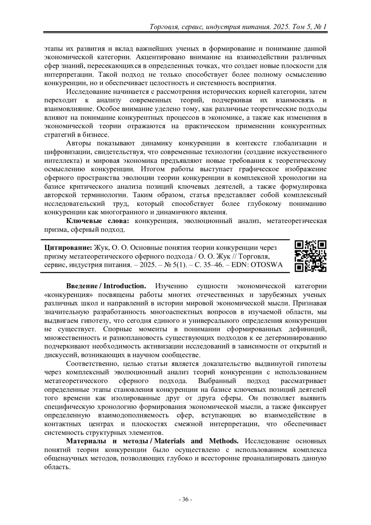 Авторы показывают динамику конкуренции в контексте глобализации и цифровизации, свидетельствуя, что современные технологии (создание искусственного интеллекта) и мировая экономика предъявляют новые требования к теоретическому осмыслению конкуренции. Итогом работы выступает графическое изображение сферного пространства эволюции теории конкуренции в комплексной хронологии на базисе критического анализа позиций ключевых деятелей, а также формулировка авторской терминологии. Таким образом, статья представляет собой комплексный исследовательский труд, который способствует более глубокому пониманию конкуренции как многогранного и динамичного явления.