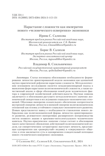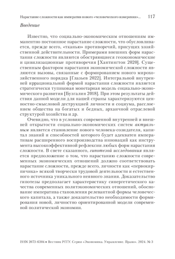 Статья посвящена обоснованию необходимости формирования личностно ориентированной модели экономики как адекватной научно-практической рефлексии нарастания сложности. Методологическим основанием исследования является междисциплинарный подход к выявлению форм нарастания политэкономической сложности, а также качественный анализ в сфере обоснования новой роли человеческого фактора в современной хозяйственной действительности. Научная новизна заключается в обосновании растущего методологического значения экономической синергетики в исследовании социально-экономических отношений. Обоснован императив сознательного обеспечения когерентности внутренней синергии личности и внешней синергии политэкономических отношений как основы устойчивого социально-экономического развития. Новым представляется вывод о необходимости становления нового либерализма как политэкономической формы личностно ориентированного развития, релевантного императивам расширенного воспроизводства систем неявного знания и креативно-интеллектуального человеческого капитала. Научно-практическое значение статьи состоит в обосновании такого качественного обновления действующей политэкономической модели, где синергетическим «аттрактором» выступает личность, предстающая одновременно как «развернутый» индивид и «свернувшееся» общество; в этом заключается суть и одновременно созидательный потенциал нового «человеческого измерения» экономики.