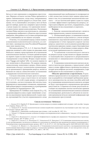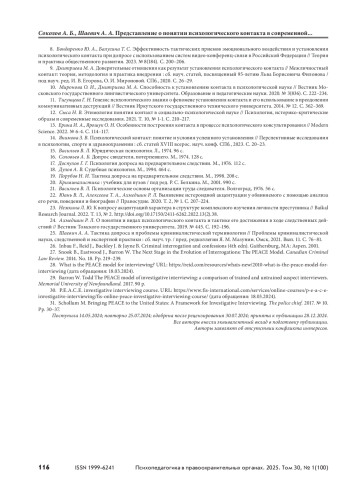 6. Зверев В. О., Соколов А. Б., Половников О. Г., Кожевников В. В., Прокурова С. В. Установление психологического контакта как организационно-тактическая особенность в деятельности следователя при производстве допроса подозреваемого // Психопедагогика в правоохранительных органах. 2019. Т. 24, № 2(77). С. 219–226. http://doi.org/10. 24411/1999-6241-2019-12014.