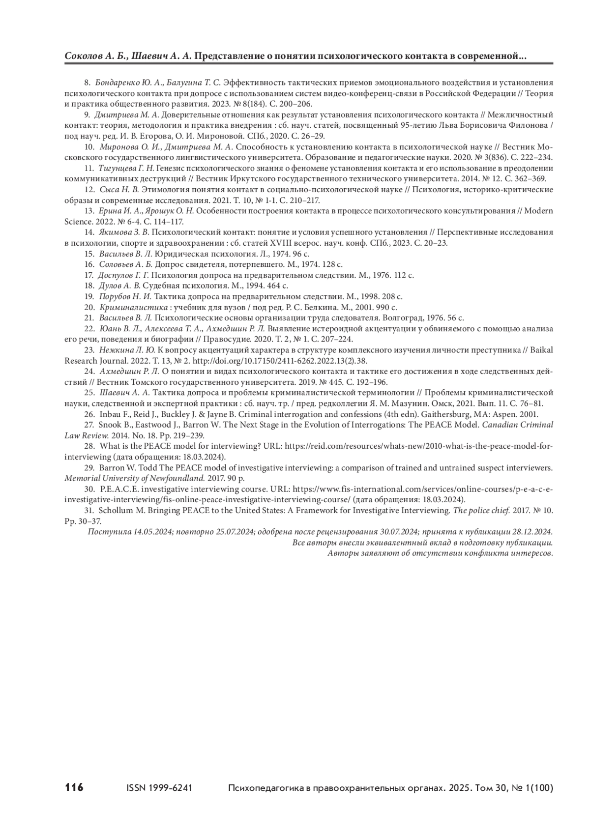 24. Ахмедшин Р. Л. О понятии и видах психологического контакта и тактике его достижения в ходе следственных действий // Вестник Томского государственного университета. 2019. № 445. С. 192–196.