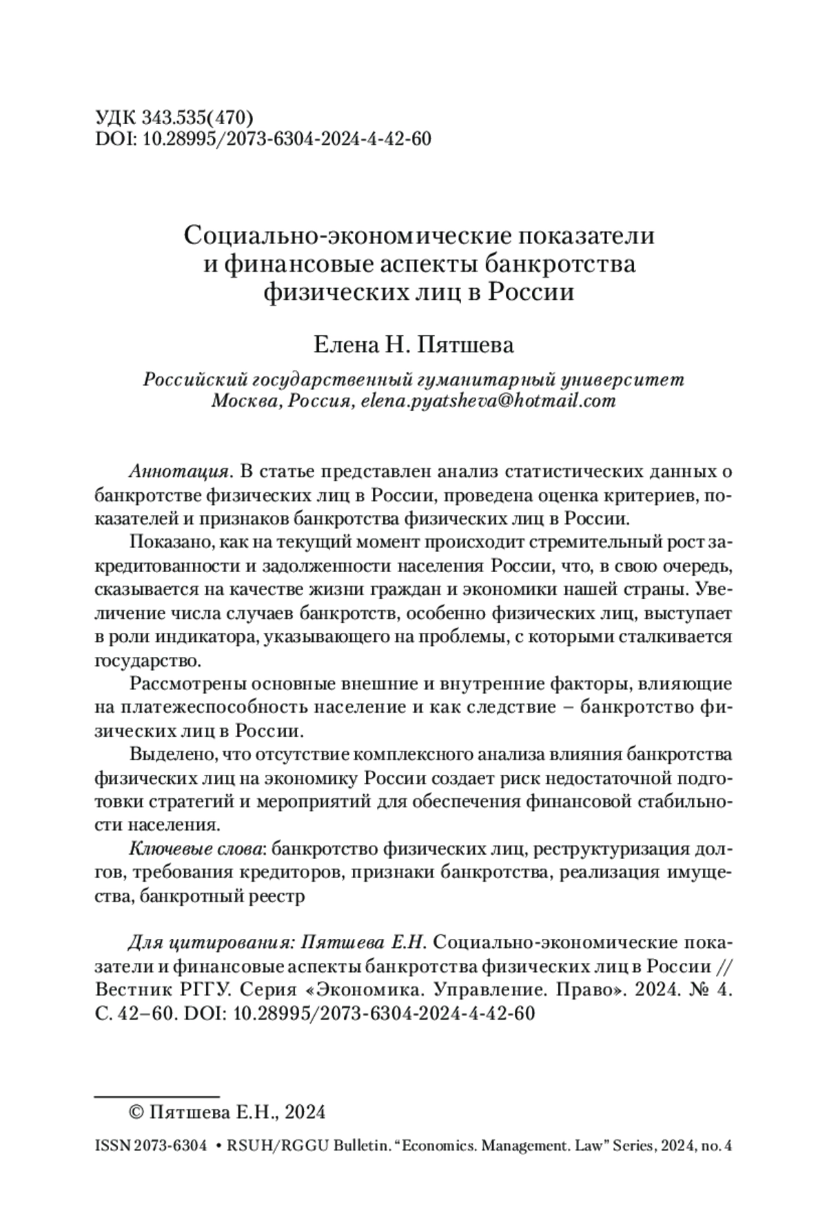 3. Ильченко 2023 - Ильченко И.В. О значении принципа добросовестности при правовом регулировании отношений, связанных с банкротством должников-граждан // Вестник арбитражной практики. 2023. № 4. С. 51-60.
