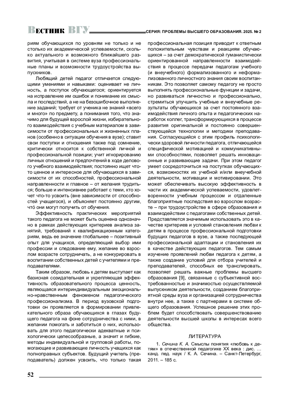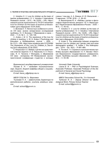 2. Volodina O. V. Love for children as the basic of teacher professionalism / O. V. Volodina // International Reasearch Journal. - 2013. - № 12(29). - URL: https://research-journal.org/en/archive/12-19-2013-december/love-for-children-as-the-basis-of-teacher-professionalism (дата обращения: 03.04.2025).