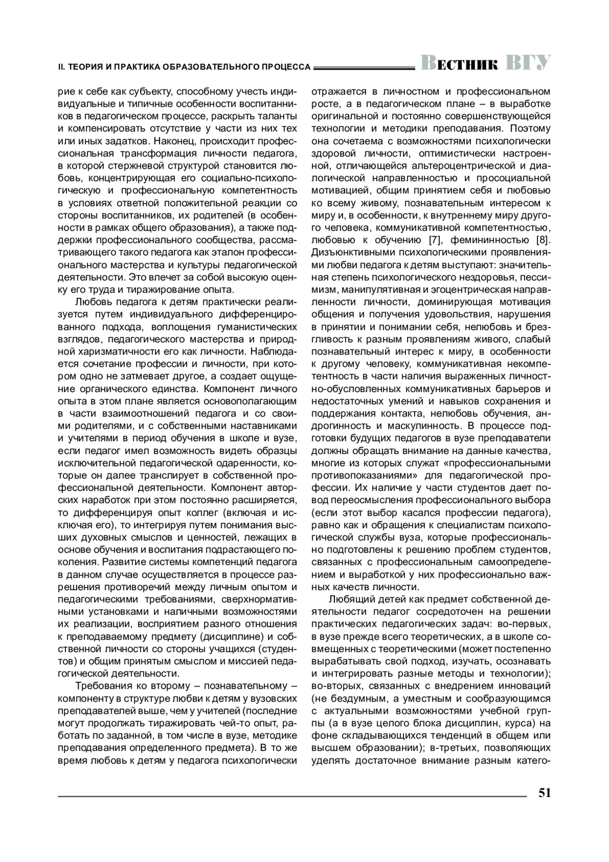 6. Верхотурова Ю. А. “Любовь к детям” в философско-педагогическом дискурсе / Ю. А. Верхотурова // Педагогическое образование в России. - 2020. -№ 6. - С. 45-52.