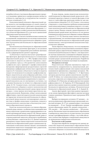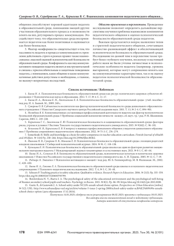1. Баева И. А. Психологическая безопасность образовательной среды как ресурс психического здоровья субъектов об- разования // Психологическая наука и образование. 2012. Т. 17, № 4. С. 11–17.