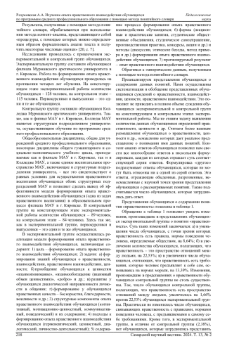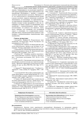 19. Разумовская А.А. Содержание структурных компонентов опыта нравственного взаимодействия студентов с другими людьми // Вестник Тверского государственного университета. Серия: Педагогика и психология. 2022. № 3 (60). С. 103-117. DOI: 10.26456/vtpsyped/2022.3.103 EDN: MVBEPW