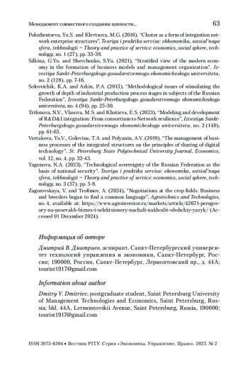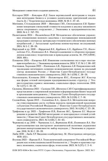 18. Трифонова и др. 2023 - Трифонова Н.В., Власова М.С., Хутиева Е.С. Моделирование и развитие R&D&I-интеграции: от консорциума к сетевой устойчивости // Известия Санкт-Петербургского государственного экономического университета. 2023. № 2 (140). С. 61-65.