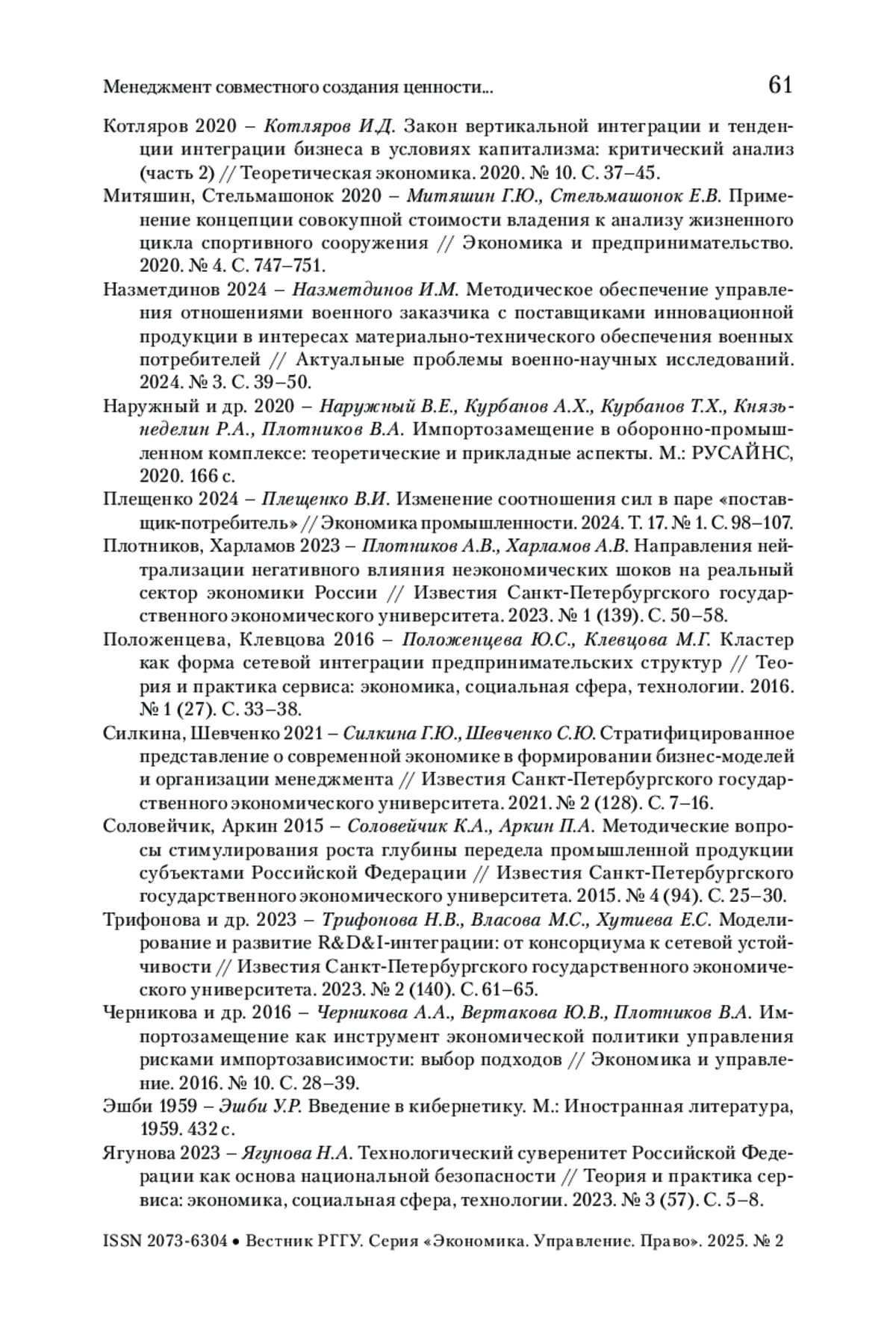 13. Плещенко 2024 - Плещенко В.И. Изменение соотношения сил в паре «поставщик-потребитель» // Экономика промышленности. 2024. Т. 17. № 1. С. 98-107.