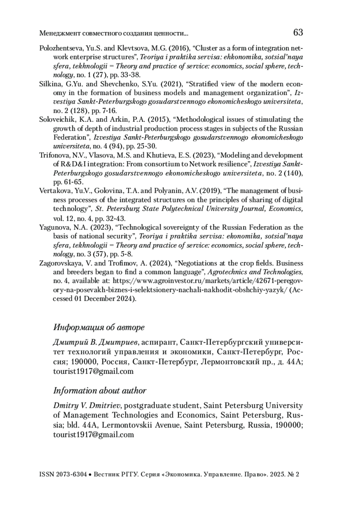 16. Силкина, Шевченко 2021 - Силкина Г.Ю., Шевченко С.Ю. Стратифицированное представление о современной экономике в формировании бизнес-моделей и организации менеджмента // Известия Санкт-Петербургского государственного экономического университета. 2021. № 2 (128). С. 7-16.