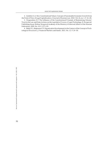Введение: одним из важнейших элементов системы конституционных гарантий повышения уровня жизни российских граждан является устойчивый экономический рост. Актуальность исследований проблем, возникающих в сфере взаимоотношений между бизнес-сообществом и властью, предопределена, происходящими в последние годы в России изменениями в экономике. Цель - проанализировать аспекты, влияющие на реализацию конституционного принципа поддержания доверия к закону и действиям государства.
