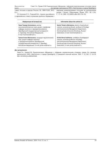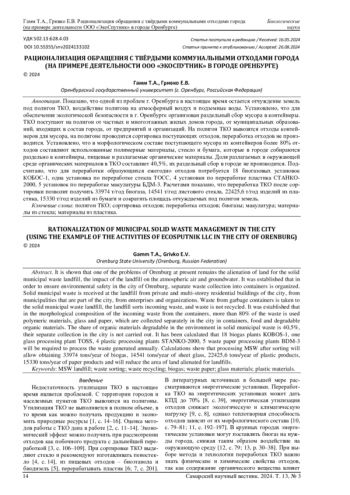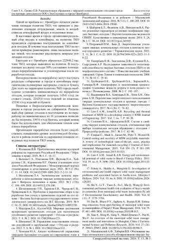 ГАММ Т. А., ГРИВКО Е. В. РАЦИОНАЛИЗАЦИЯ ОБРАЩЕНИЯ С ТВЁРДЫМИ КОММУНАЛЬНЫМИ ОТХОДАМИ ГОРОДА (НА ПРИМЕРЕ ДЕЯТЕЛЬНОСТИ ООО "ЭКОСПУТНИК" В ГОРОДЕ ОРЕНБУРГЕ) // САМАРСКИЙ НАУЧНЫЙ ВЕСТНИК. 2024. ТОМ 13, № 3