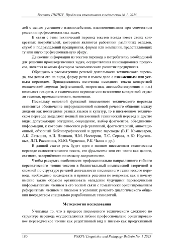 Статья: ПРОФЕССИОНАЛЬНОЕ ГИБКОЕ ПЕРЕВОДЧЕСКОЕ ЧТЕНИЕ ТЕКСТОВ В РЕЧЕВОЙ БИЛИНГВАЛЬНОЙ ДЕЯТЕЛЬНОСТИ ПИСЬМЕННОГО ТЕХНИЧЕСКОГО ПЕРЕВОДА (2025)