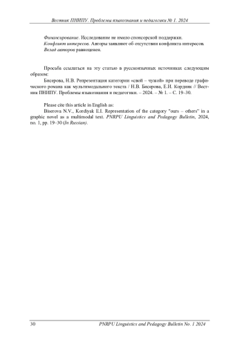 7. Соловьева, Н.С. Перевод графического романа как разновидности мультимодального текста / Н.С. Соловьева, О.М. Седлярова // Гуманитарно-педагогические исследования. - 2023. - № 1. - С. 78-84. EDN: CTAXZE