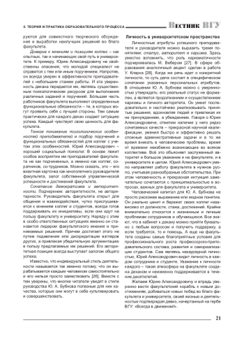 18. Бубнов Ю. А. Психологические знания и их роль в организации деятельности педагога / Ю. А. Бубнов // Вестник Воронежского государственного университета. Серия: Проблемы высшего образования. -2012.-№ 1,-С. 35-38. EDN: OYHGBR