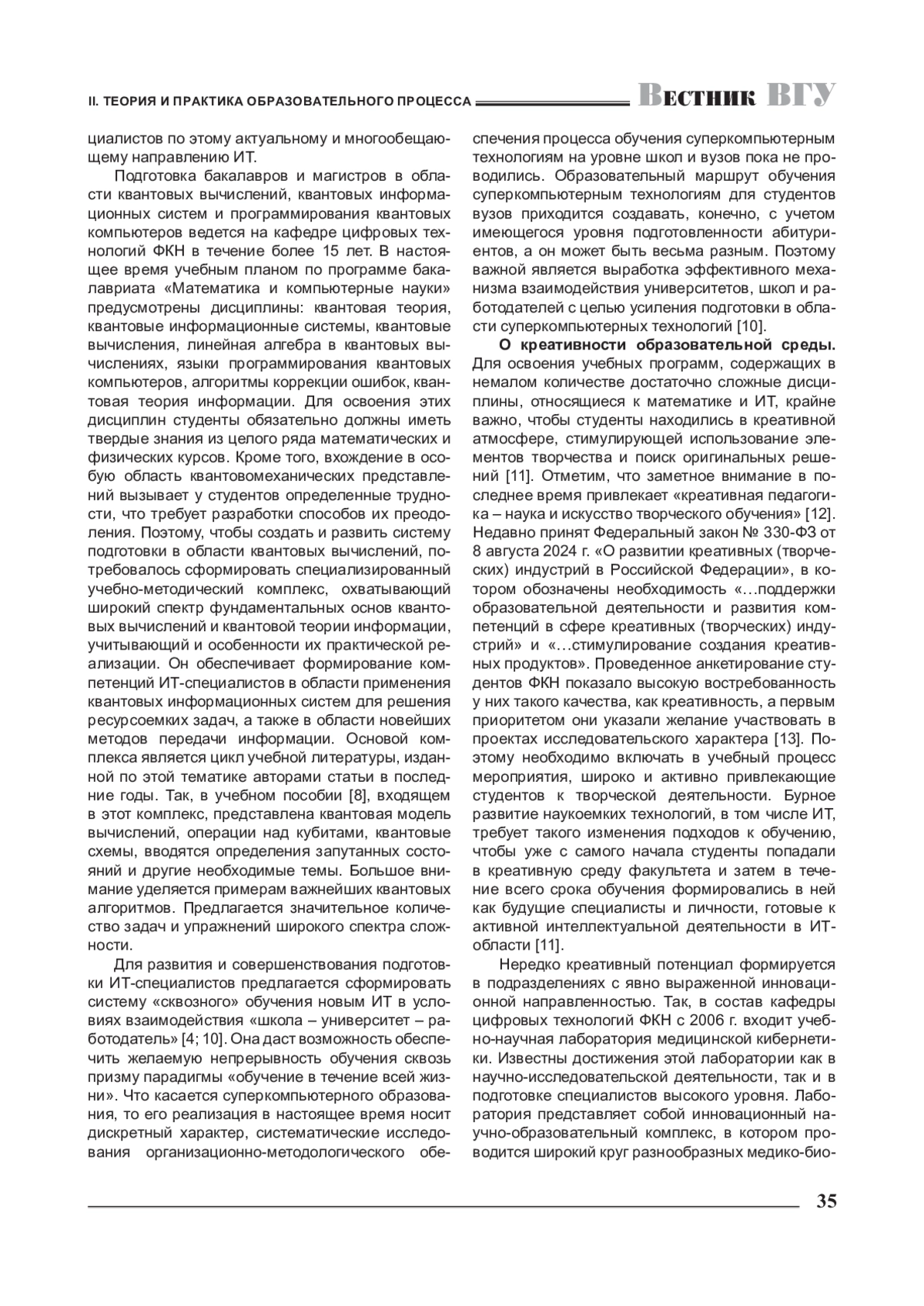Ключевые фразы: информационные технологии, высшее образование, суперкомпьютерные технологии, КВАНТОВЫЕ ВЫЧИСЛЕНИЯ, креативная образовательная среда