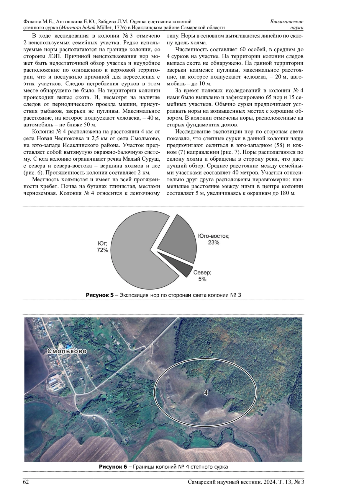 Статья: ОЦЕНКА СОСТОЯНИЯ КОЛОНИЙ СТЕПНОГО СУРКА (MARMOTA BOBAK MüLLER, 1776) В ИСАКЛИНСКОМ РАЙОНЕ САМАРСКОЙ ОБЛАСТИ (2024)