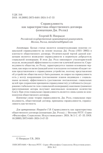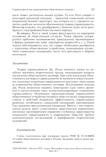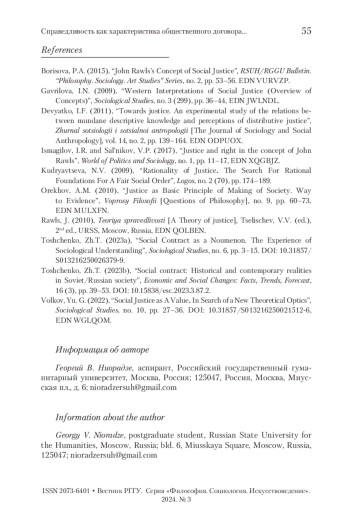 1. Борисова 2015 - Борисова П.А. К концепции социальной справедливости Дж. Роулза // Вестник РГГУ. Серия «Философия. Социология. Искусствоведение». 2015. № 2. С. 53-56. EDN VURVZP.